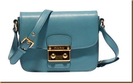 Miu Miu Madras series of handbags available in six different styles, with adjustable shoulder strap, double-button clasp, are light-colored, including turquoise, papaya color, soft pink, white and light blue.